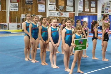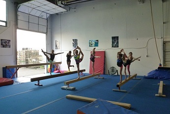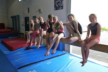 Recreational programs are for gymnasts 6 to 8 years old and include a modified CANGYM program level 1 : star jump, seat drops back to feet, jump down on two feet from a higher surface, front roll down the incline mat, front roll around the bar, handstand at the wall spider handstand 10 sec, spin the cat (a back to front somersault), walking forward on medium beam, shoulder stand 5 sec hold, bridge 5 sec and cartwheel. Gymnasts improve strength, balance, flexibility, coordination and learn the gymnastics basic skills.