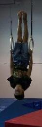 Modified CANGYM program level 3: pull over on the low bar; 5 long swings with good form; candle hold from hanging 10 sec, climb ½ on the rope, walking forward and backwards and with front/back kicks; scale hold one-foot, round of dismount, forward roll to standing on flat; backward roll on the cheese mat; handstand on the floor, cartwheel one hand; handstand -bridge -kick over at the box; running round off the fast track